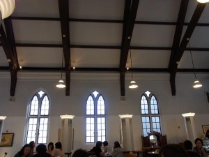 ここは、もともと教会だった建物を改装し、1階はパンなどが買えるショップ、2階がカフェになっています